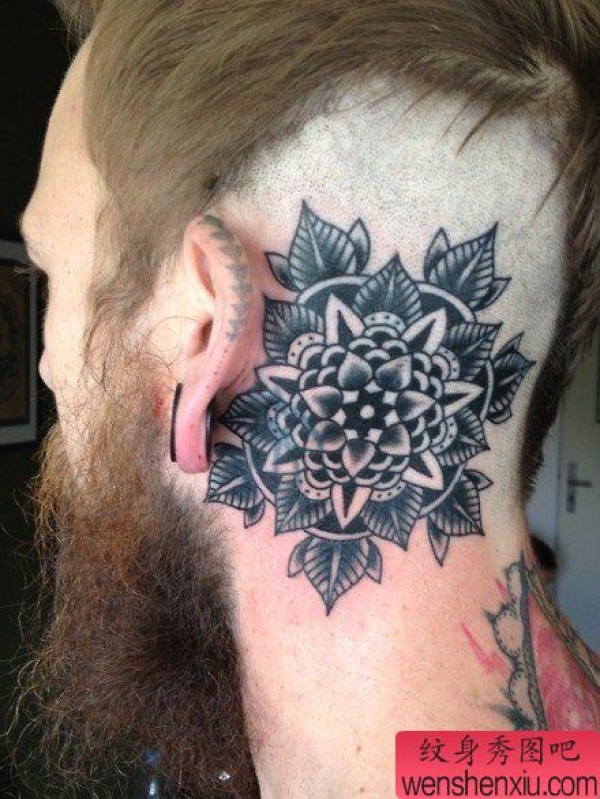 头部时尚唯美的欧美黑白school花卉纹身图案