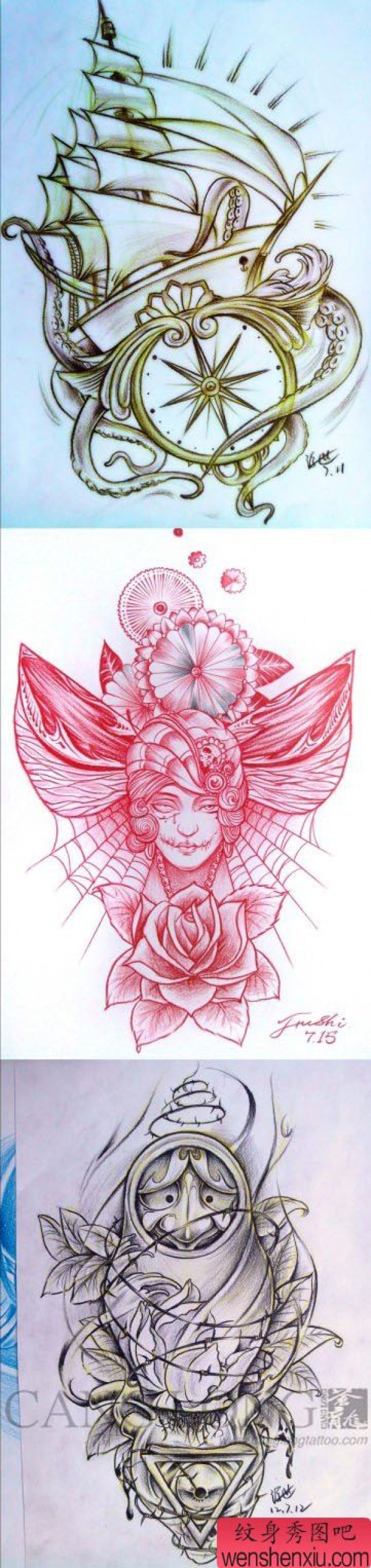 能面万媚纹身手稿_52张日式能剧面具纹身手稿图案素材欣赏