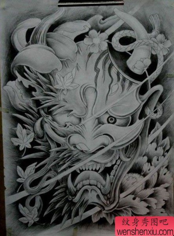 能面万媚纹身手稿_52张日式能剧面具纹身手稿图案素材欣赏