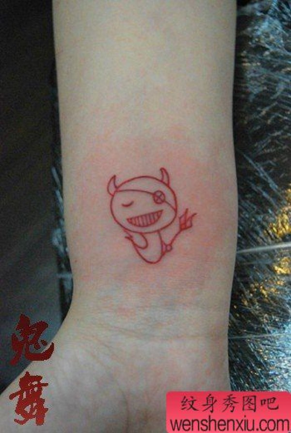 女生手腕小巧可爱的小恶魔纹身图案