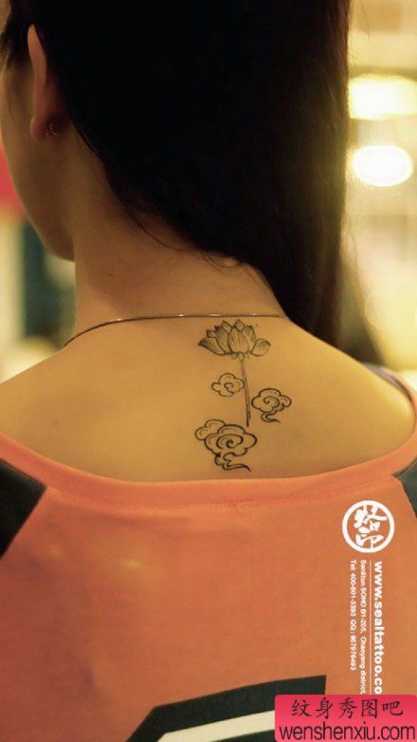 女生后背唯美时尚的图腾莲花·云纹身图案