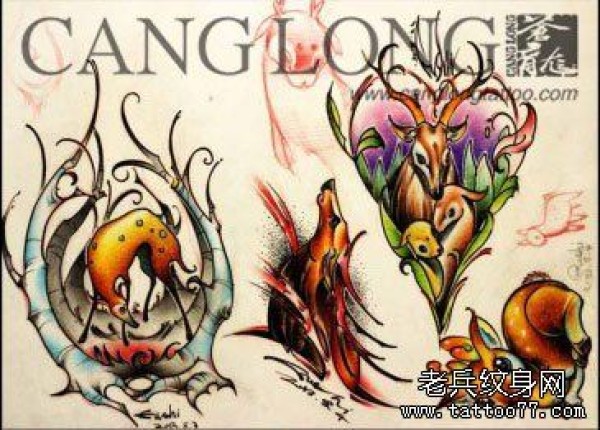 一组18张漂亮的欧美newschool动物纹身手稿图案