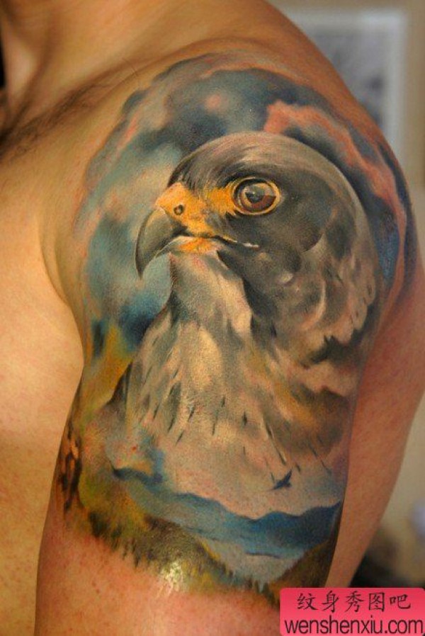 男士手臂超帅的欧美彩色老鹰纹身图案