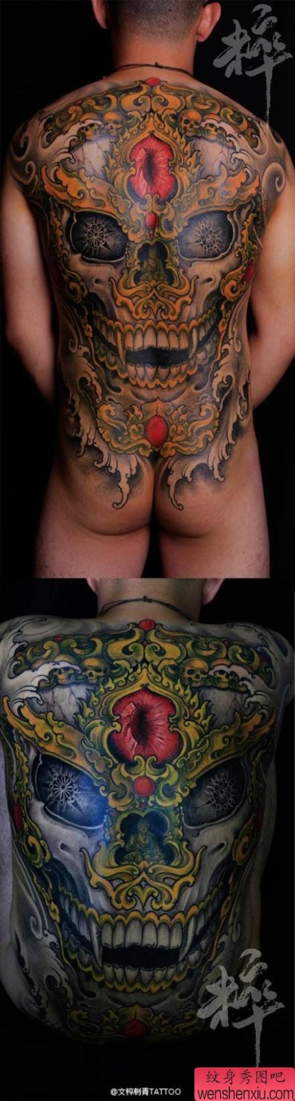 男士后背霸气超酷的满背嘎巴拉纹身图案