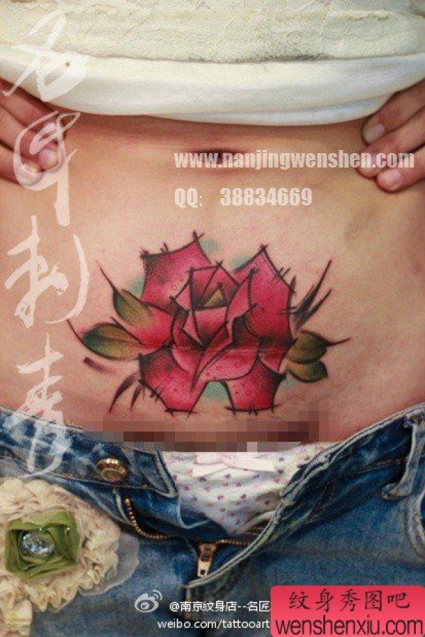 女生腹部疤痕遮盖-精美时尚的school玫瑰花纹身图案