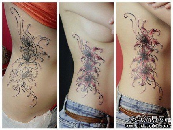 美女腰部唯美漂亮的彼岸花纹身图案
