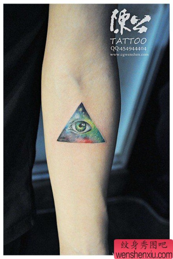 手臂精美时尚的星空全视之眼纹身图案