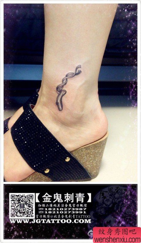 女生脚踝处小巧的芭蕾鞋纹身图案