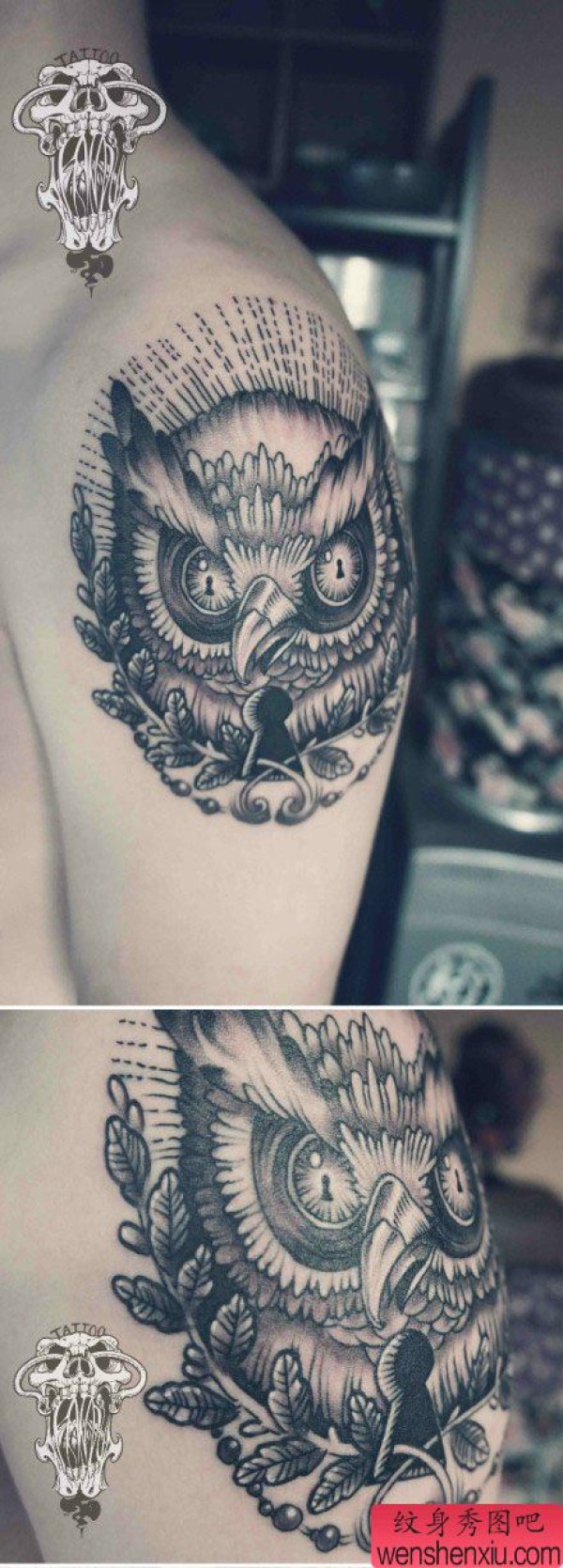 手臂时尚时尚的黑白猫头鹰纹身图案