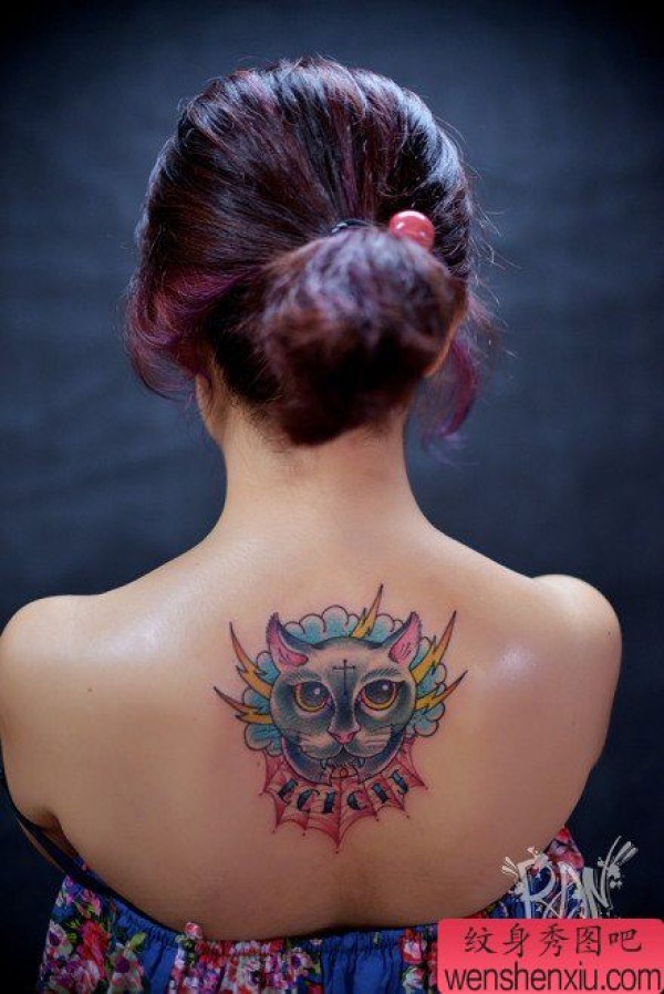 女生后时尚时尚的猫咪纹身图案