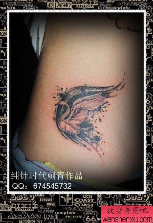 女生腹部一张小天鹅纹身图案