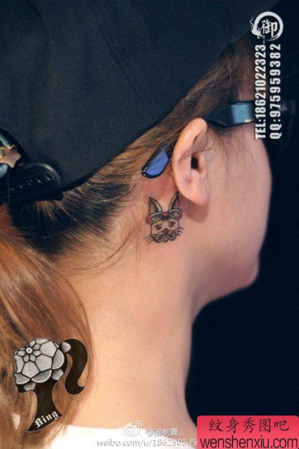 女生耳部小巧的小兔子纹身图案