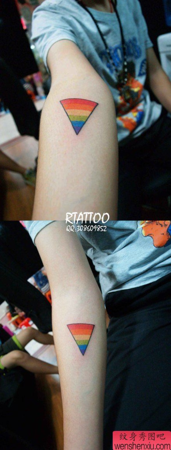 手臂一张小巧的三角纹身图案