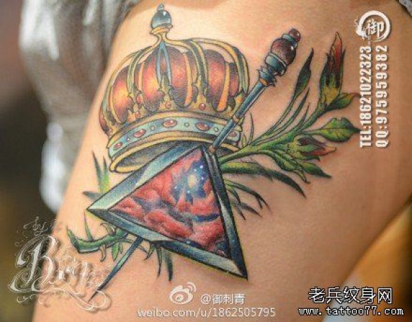手臂精美时尚的皇冠权杖纹身图案
