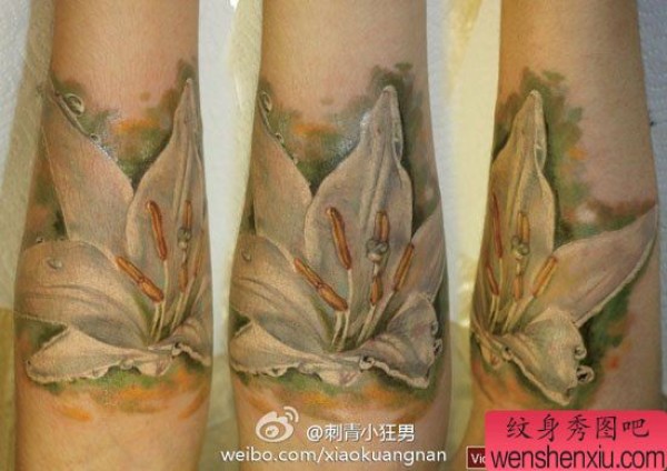 手臂漂亮精美的一张欧美彩色百合花纹身图案