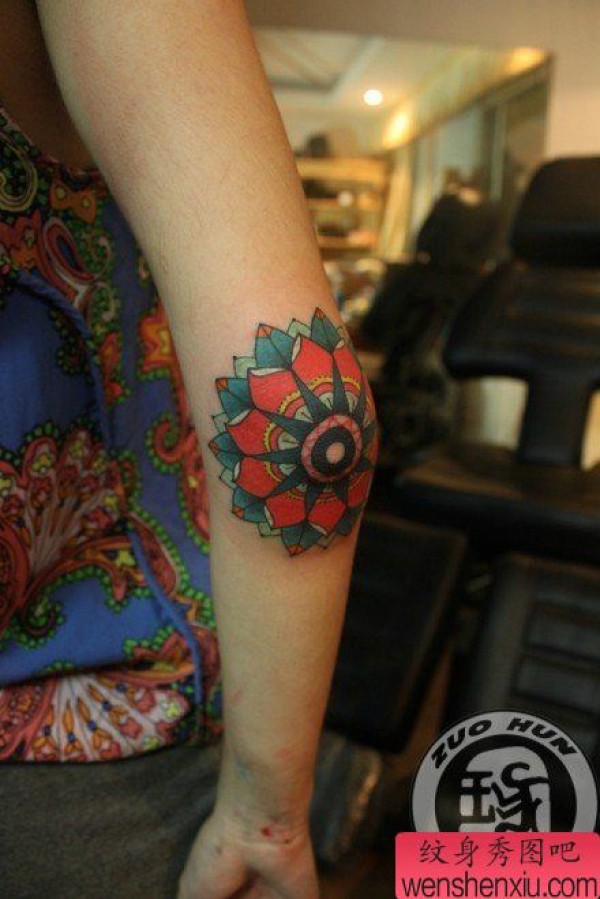 美女胳膊肘经典好看的图腾花卉纹身他们