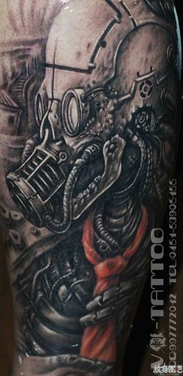 欧美花臂纹身_22张霸气黑灰欧美大黑花臂纹身图案作品图片