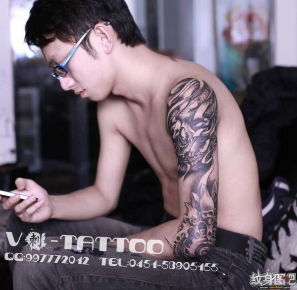 欧美花臂纹身_22张霸气黑灰欧美大黑花臂纹身图案作品图片