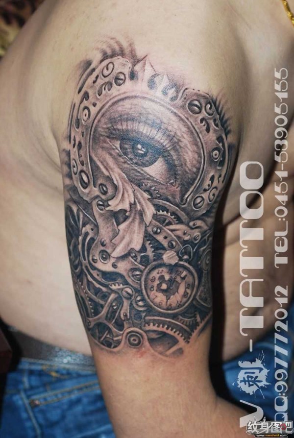 欧美花臂纹身_22张霸气黑灰欧美大黑花臂纹身图案作品图片