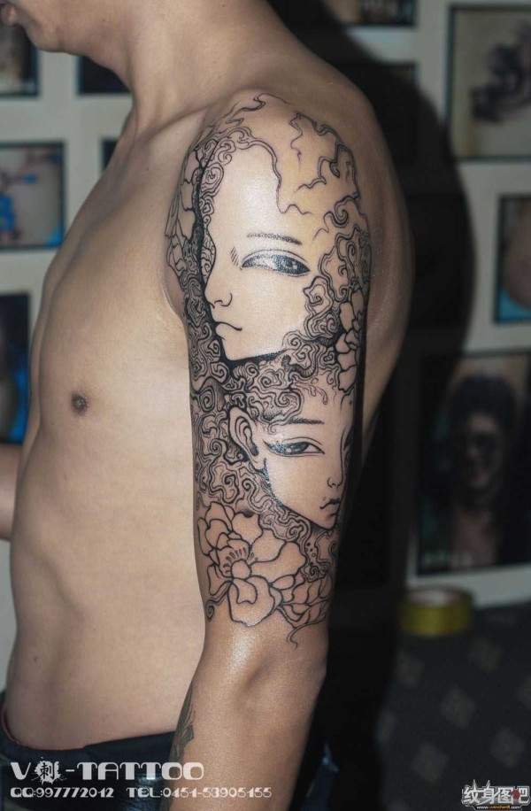能面万媚纹身手稿_52张日式能剧面具纹身手稿图案素材欣赏