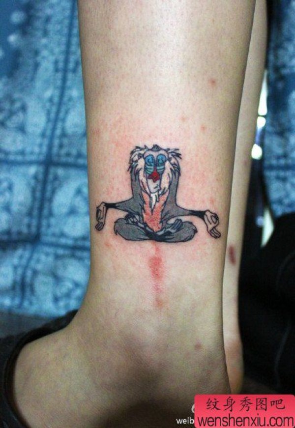 腿部时尚经典的卡通猴子纹身图案
