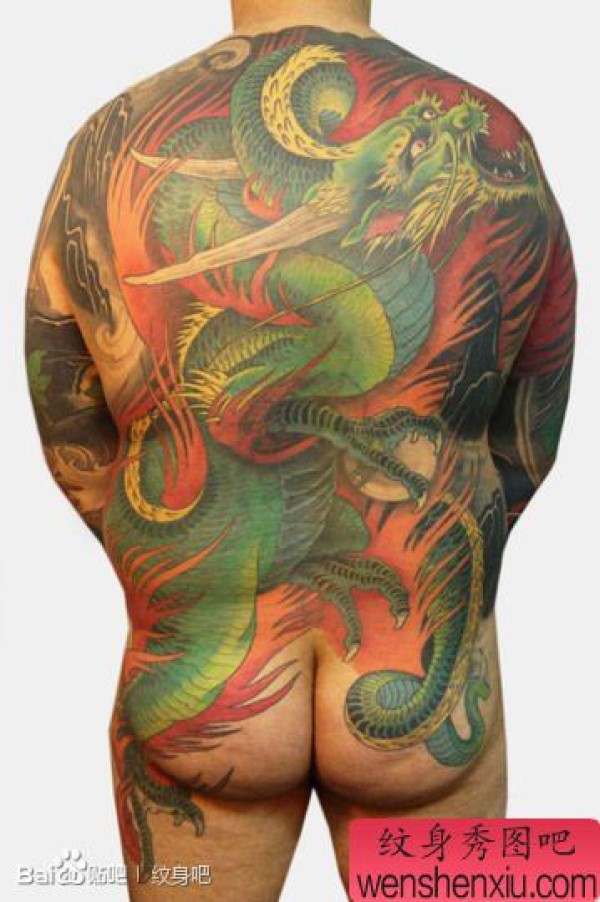 男士后背超酷霸气的满背龙纹身图案