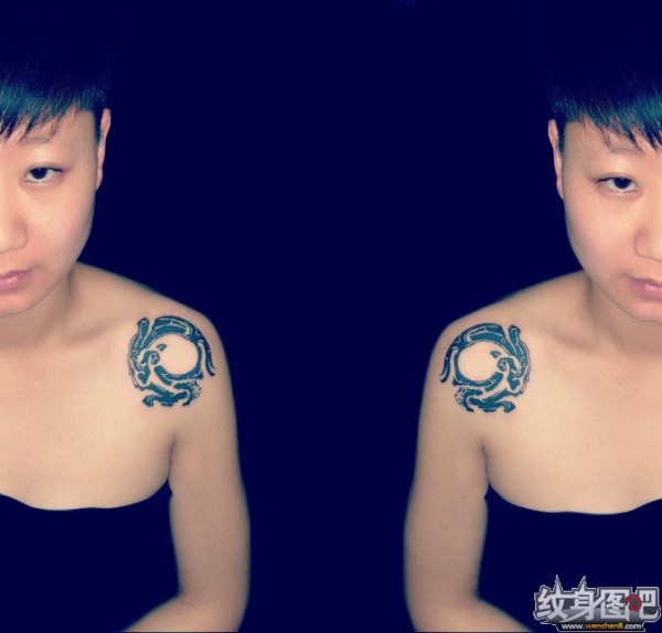 女生肩花纹身_15张女性双肩对称的肩花纹身图案作品图片