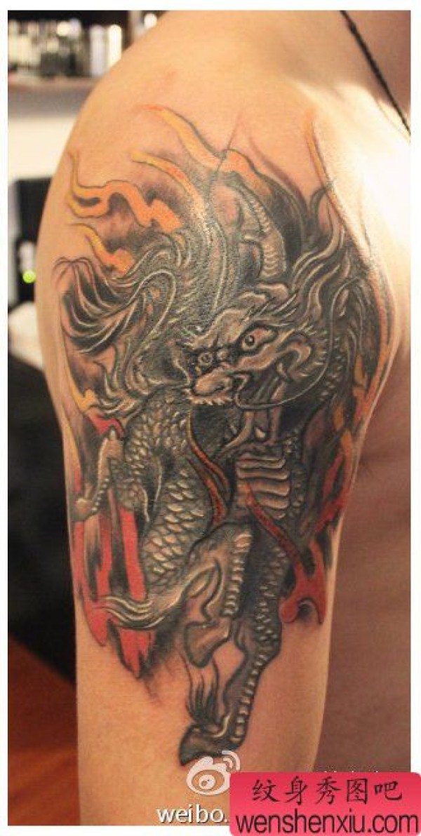 男士手臂很酷经典的麒麟纹身图案