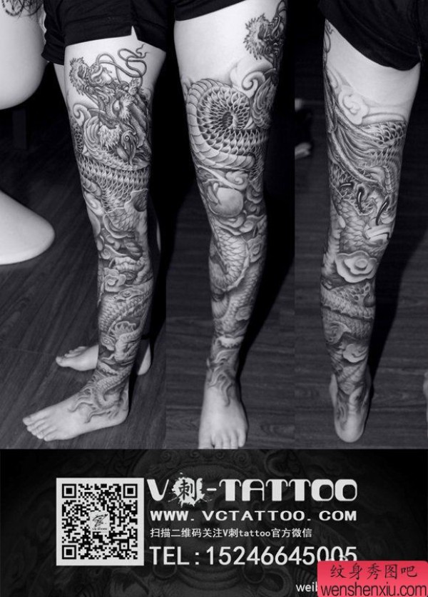 美女腿部超帅的花腿石雕龙纹身图案