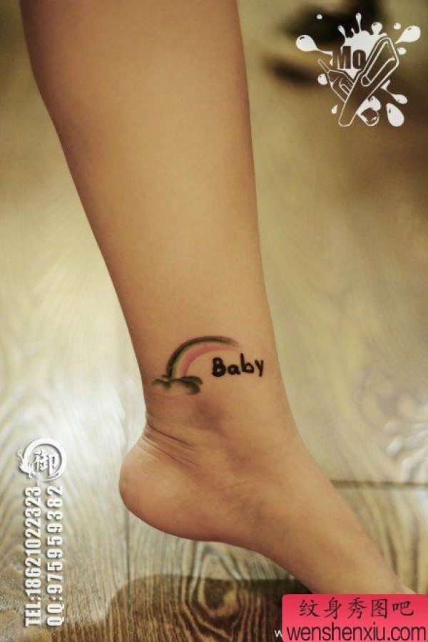 女生脚踝处小巧时尚的彩虹纹身图案