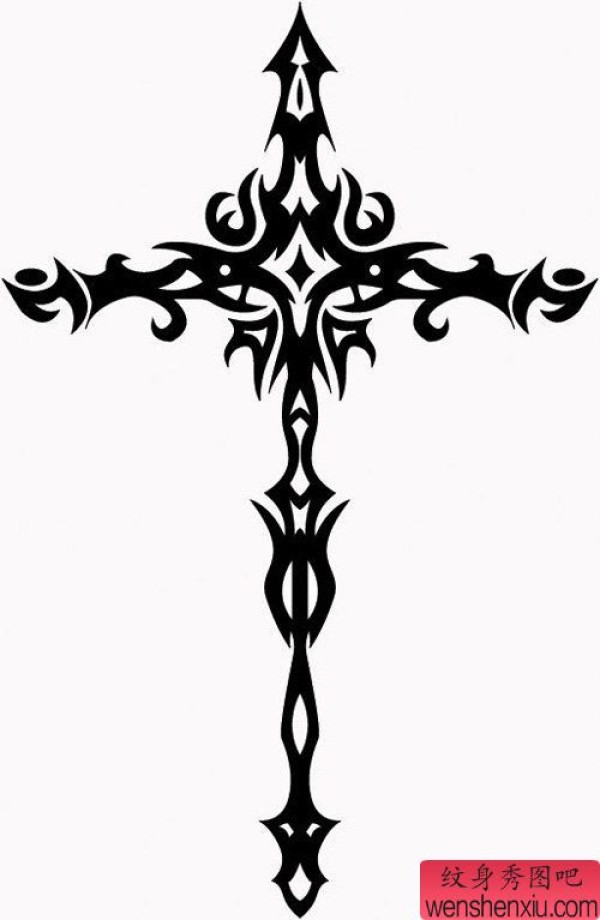 时尚时尚的一张图腾十字架纹身手稿