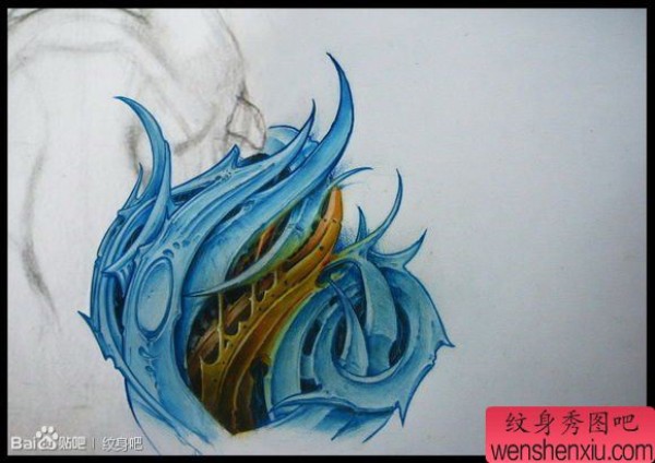 一张很酷时尚的的欧美彩色机械纹身手稿