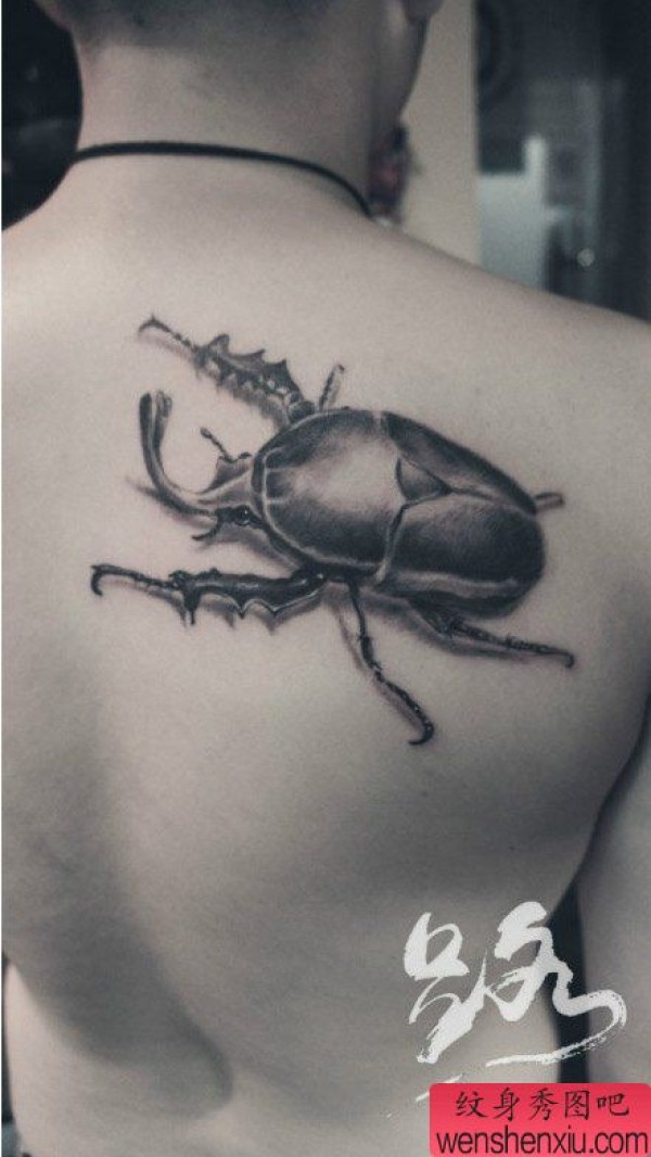 男生肩背时尚很帅的独角仙纹身图案