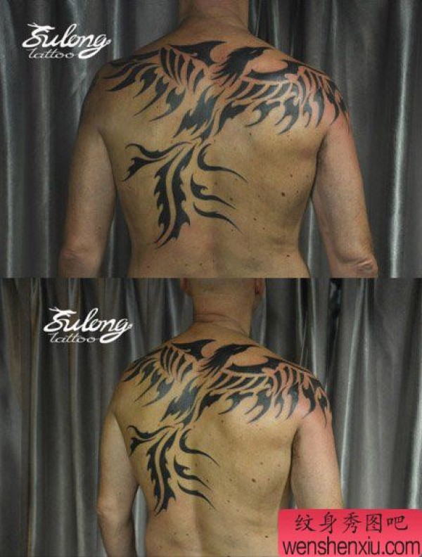 男士后背帅气时尚的图腾凤凰纹身图案