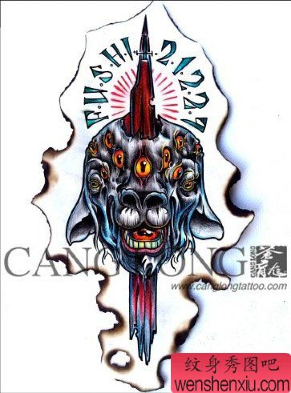 时尚很帅的一张很多眼睛的羊头纹身图案