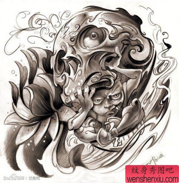 达摩蛋纹身手稿_40张达摩蛋手稿纹身图案素材
