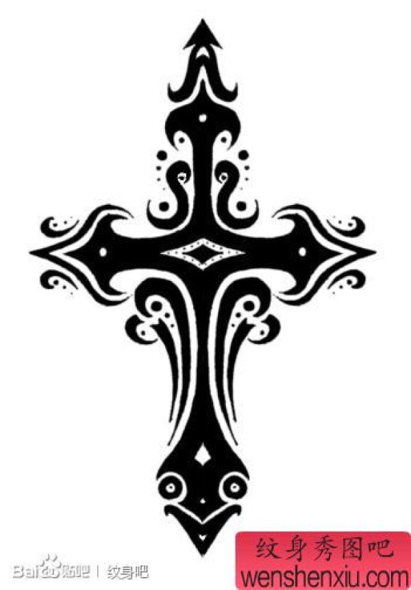 手臂一张时尚时尚的图腾十字架纹身图案