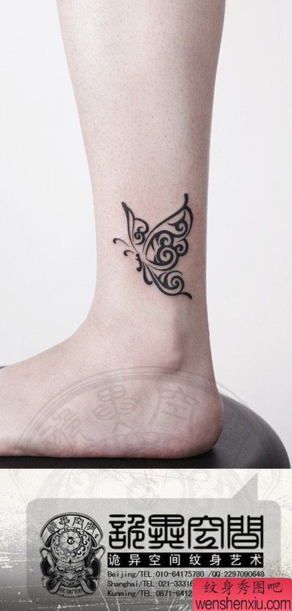 女生腿部时尚唯美的图腾蝴蝶纹身图案