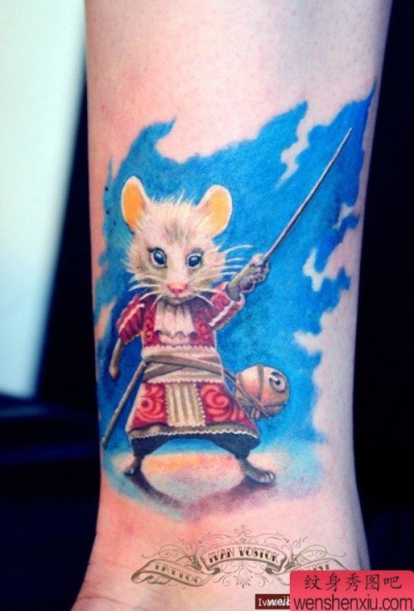 腿部可爱时尚的一张小老鼠纹身图案
