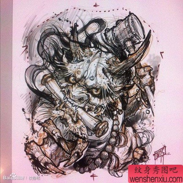 能面万媚纹身手稿_52张日式能剧面具纹身手稿图案素材欣赏