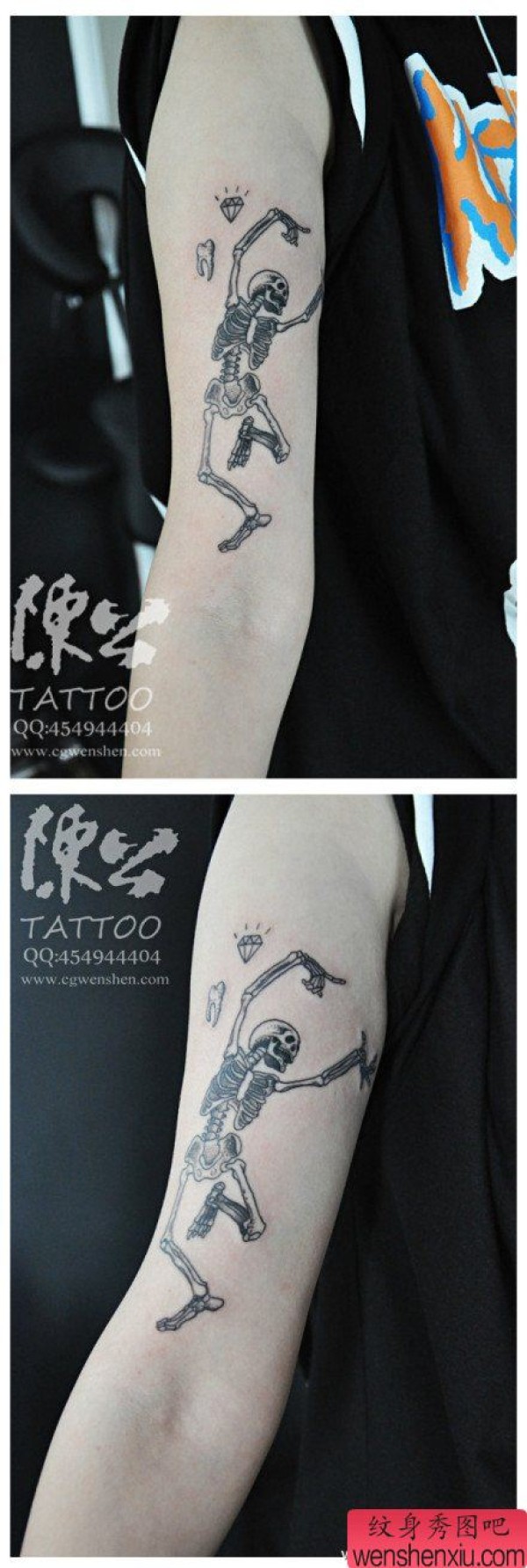 手臂一张时尚很酷的跳舞的骷髅纹身图案