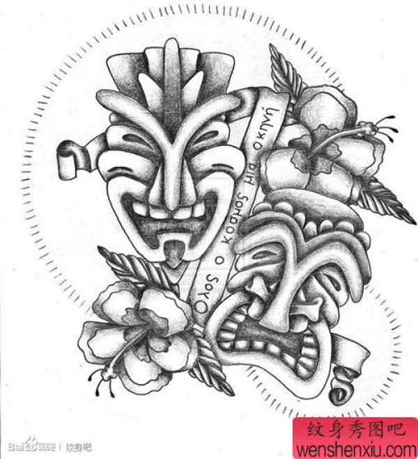 能面万媚纹身手稿_52张日式能剧面具纹身手稿图案素材欣赏