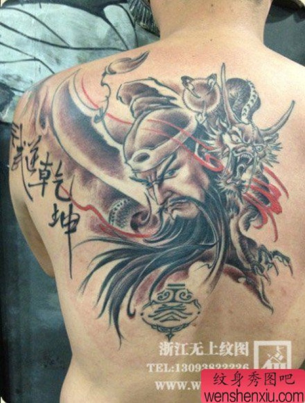 男士后背时尚很酷的关公纹身图案