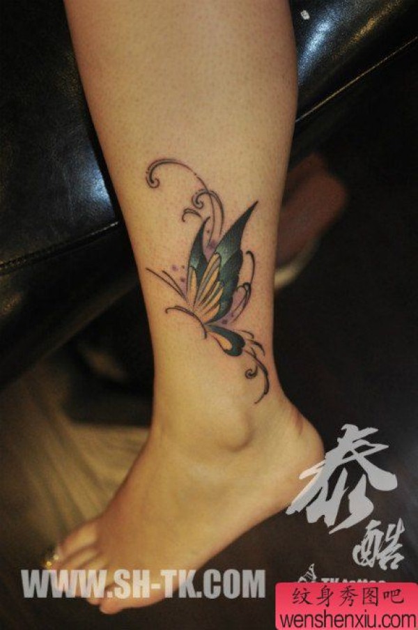 女生腿部时尚精美的一张彩色蝴蝶纹身图案