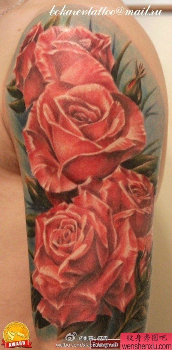 手臂漂亮精美的粉色玫瑰花纹身图案