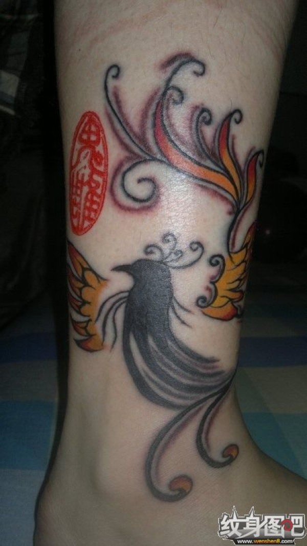 肩部图腾凤凰纹身