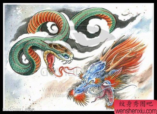 龙纹身手稿_一组老传统黑灰龙手稿纹身图案