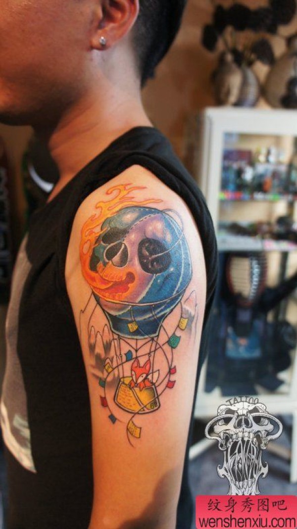 手臂一张很酷时尚的骷髅热气球纹身图案