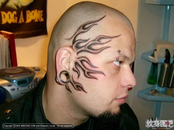 霸气男头部时尚纹身图片_头部纹身图案大全_纹身图吧