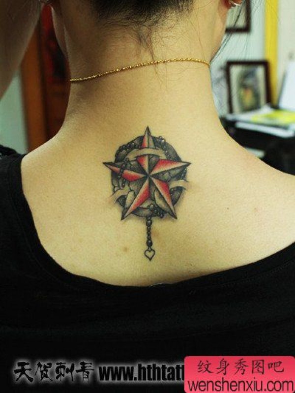 女生后脖子时尚很酷的五芒星纹身图案